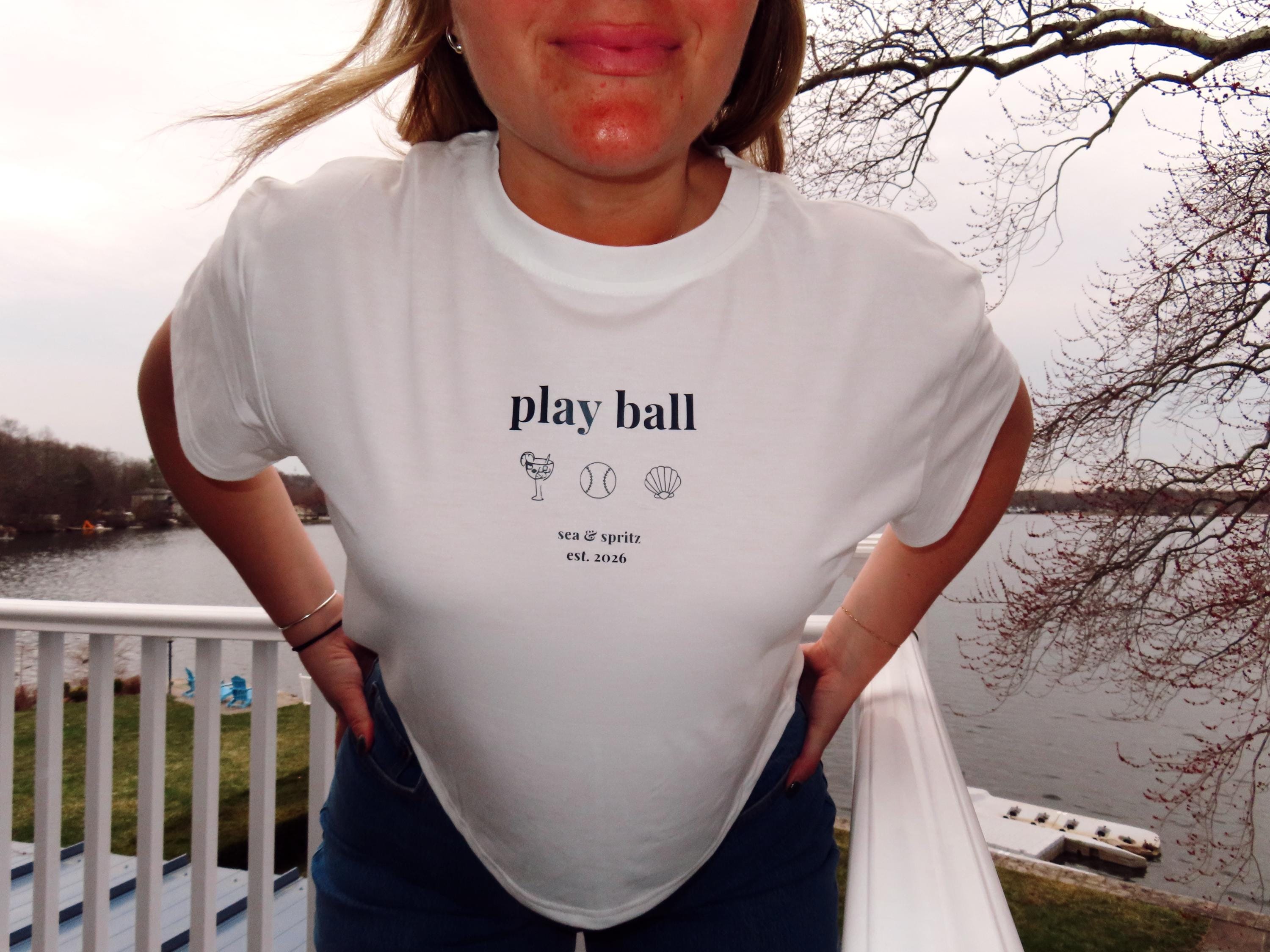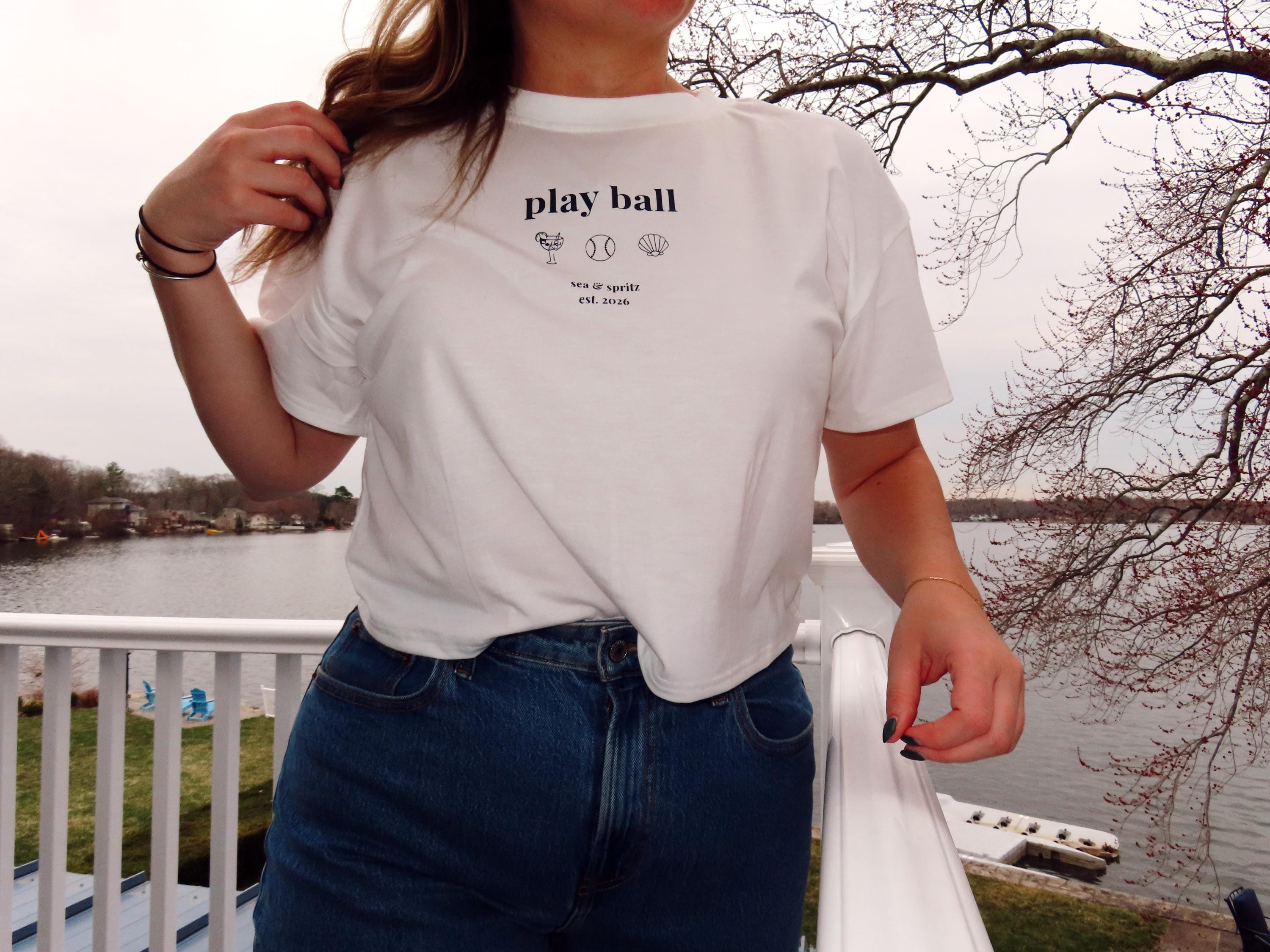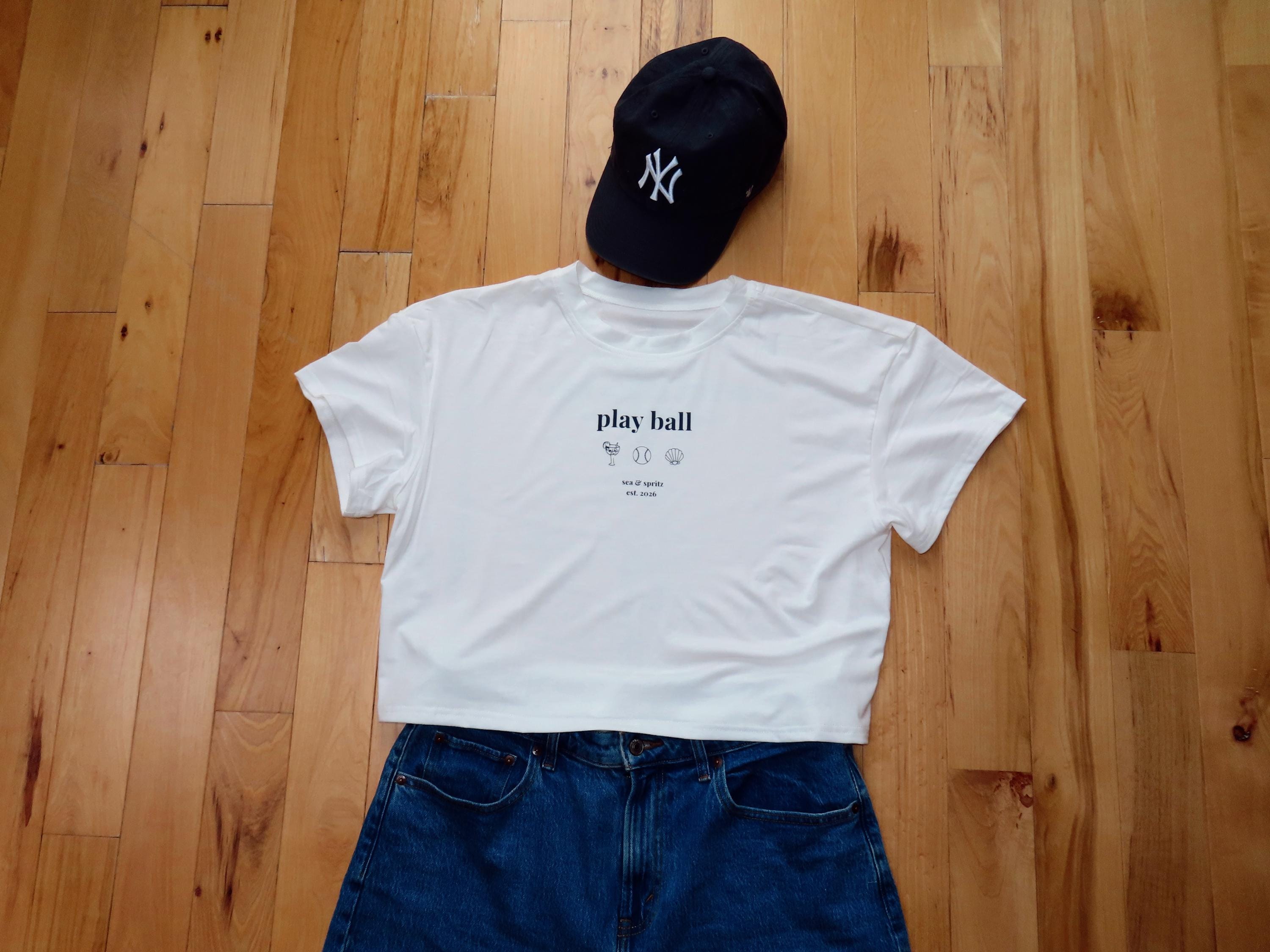 whether you’re heading to the field, watching from the stands, or just love a sporty coastal aesthetic, this is the perfect cropped tee to throw on and go